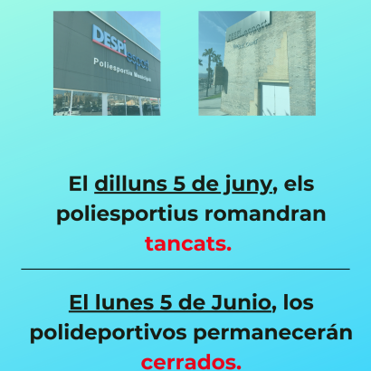 El lunes 5 de junio los Polideportivos permanecerán cerrados.