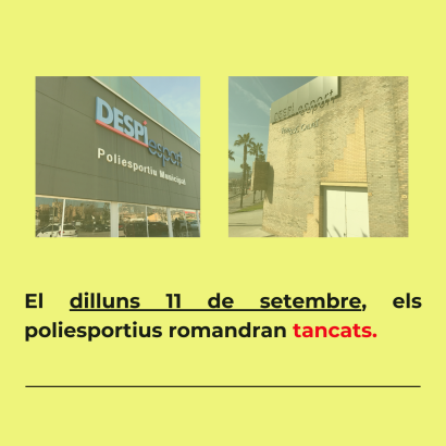 El lunes 11 de septiembre los Polideportivos permanecerán cerrados.