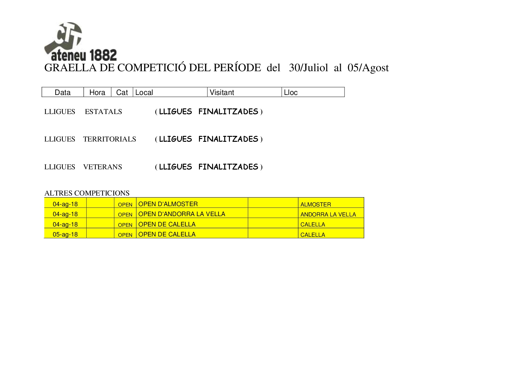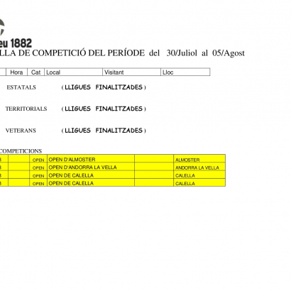 GRAELLA DE COMPETICIÓ DE TENNIS TAULA DEL PERÍODE del 30/Juliol al 05/Agost amb cttateneu