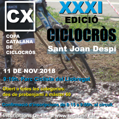 Diumenge 11 novembre tindrà lloc al Parc Ciclista del Llobregat el XXXI Ciclocròs. El Club Ciclista Sant Joan Despí, entitat organitzadora, espera repetir l'èxit de l'any passat, que va comptar amb la participació de 200 corredors de totes les edats, des de prebenjamí fins a màster 60. La prova és puntuable per a la Copa Catalana de Ciclocròs.