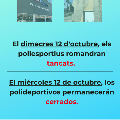 El 12 d'octubre els Poliesportius romandràn tancats.