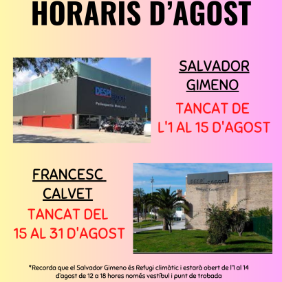 - Del 16 al 31 d'agost el Salvador Gimeno estarà obert (el Francesc Calvet tancat)